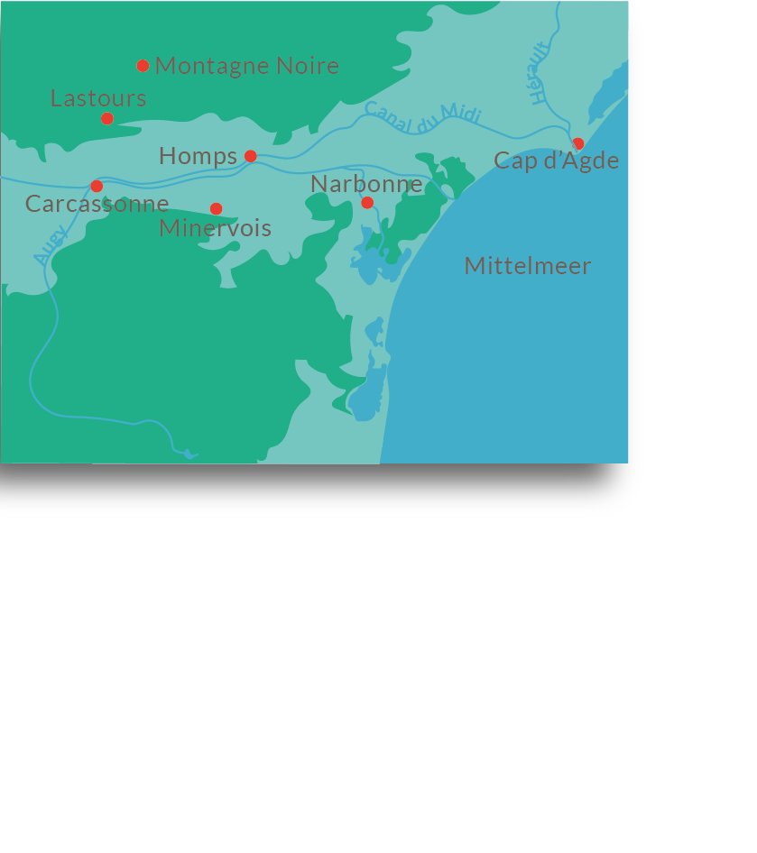 Ein Traum seit den Zeiten der Römer: Der Canal du Midi, eine Wasserstraße, die die sonnigen Gestade des Mittelmeeres mit dem Atlantik verbindet, um auf direktem Weg den Reichtum des Südens an Wein, Getreide und Öl nach Nordeuropa transportieren zu können. Im Schatten Tausender Platanen durchzieht der Canal den südwestlichsten Teil Frankreichs. Ein Traum per Rad! Die Baudenkmäler aus gallisch-römischer Zeit sind zahlreich in Narbonne und Béziers. Carcassonne wiederum ist durch seine mittelalterliche Festungsanlage, Mauern, Türme, Burgen und sonstigen Verteidigungsbauten bemerkenswert. Die Abteien von Fontfroide und Valmagne zeugen zusammen mit den Kathedralen von Mende und Narbonne vom Triumph der Gotik des Languedoc.