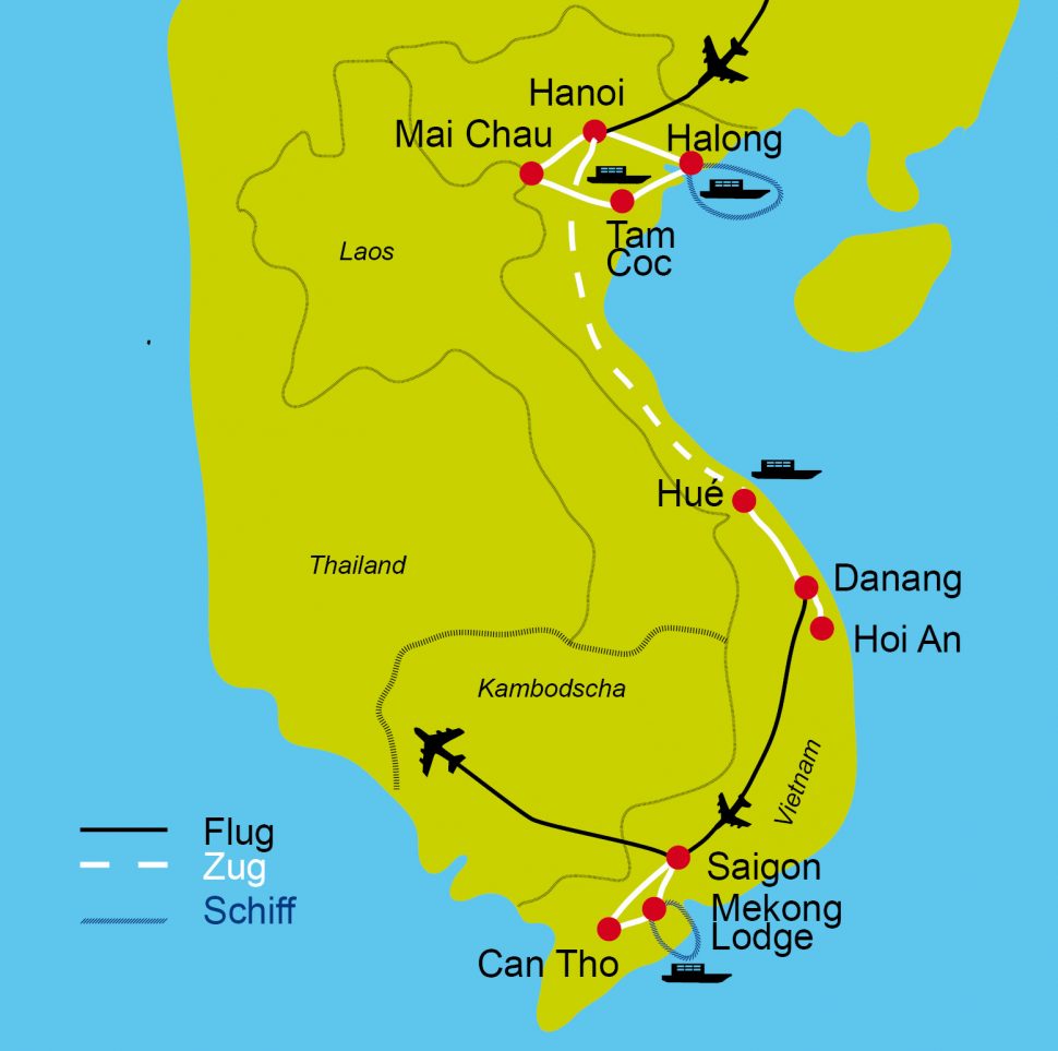 Seidenhändler aus Japan und China begründeten im 16.J. den Reichtum der Stadt. Viele europäische Handelsschiffe nahmen damals Kurs auf Hoi An. Nach der Besichtigung von Hoi An führt unser Radausflug durch die idyllische Umgebung der bezaubernden Stadt. Nach dem Mittagessen steuern wir zielstrebig das Ziel an: den Traumstrand mit Badeaufenthalt am paradiesischen Südchinesischen Meer.
