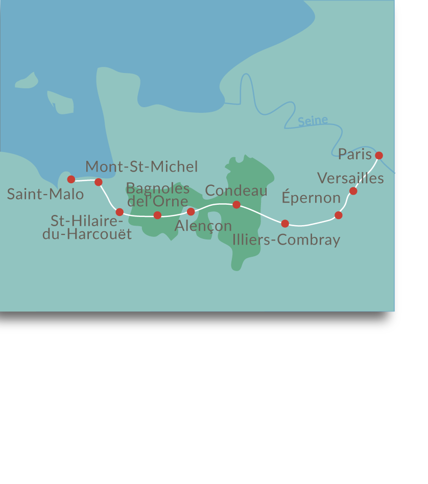Vous quittez Versailles et entrez dans la charmante vallée de Chevreuse. Les petits villages de cette région verdoyante vous offrent de jolies surprises. Vous pouvez déguster de la bière artisanale, du fromage à la ferme, ou encore découvrir la gamme de centaine de parfums de sirop chez un artisan siropier sur votre route. Au Château de Rambouillet, vous découvrez le faste de toute une époque à la Laiterie de la reine Marie Antoinette et vous êtes émerveillé par la finesse inégalée des décors de la fameuse Chaumière aux Coquillages de la Princesse de Lamballe. Ce joli parcours se termine à Epernon.