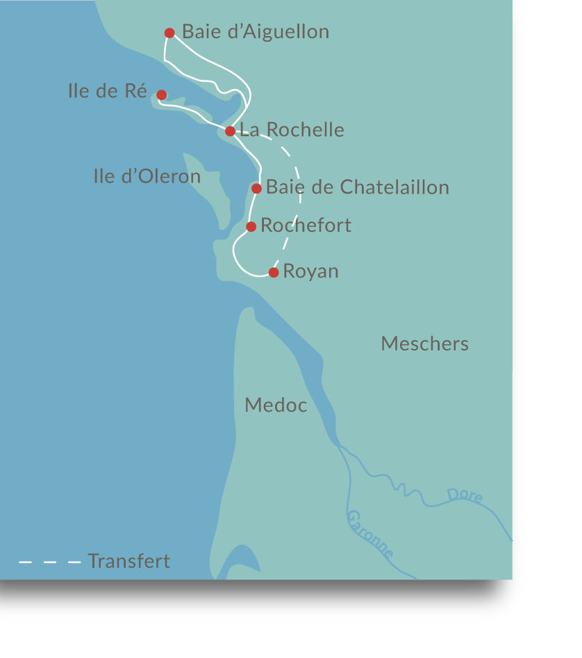 You will leave Marennes along a quiet cycle path, and will arrive in a pine forest overlooking the sea. Do not forget your swimsuit! Your ride follows an enjoyable cycle path along the rocky coast to Royan. This final day will be punctuated by the varied and colourful landscapes.