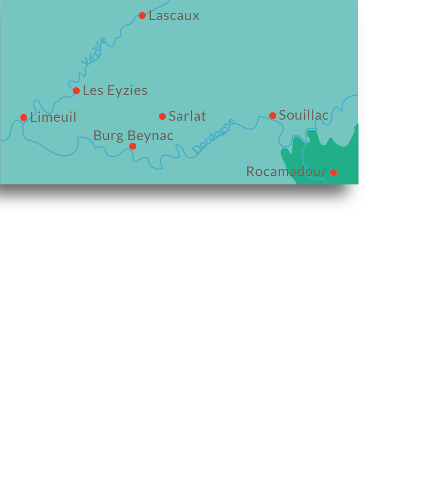 From here, we cycle along the wonderful river loop back to Soulliac. Return by bus to Sarlat